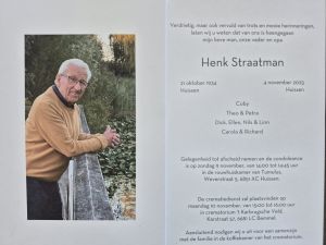 Onlangs ontvingen wij het bericht dat deze betrokken, fijne Huissenaar Henk Straatman, is overleden.